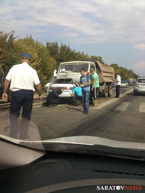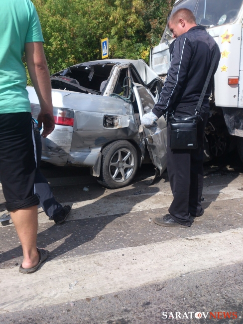 Сегодня около полудня под Саратовом на Усть-Курдюмском шоссе произошло серьезное лобовое столкновение легковушки с грузовиком. Водитель "десятки" двигался из центра и задел ехавший впереди "Ford Fusion". От этого машину повело, она выскочила на встречку и врезалась лоб в лоб с несущимся "КамАЗом". Не смотря на то, что машину буквально смяло, водитель остался жив. Как уточнили в центре медицины катастроф Saratovnews, мужчину с тяжелейшими травмами увезла "скорая помощь". О других пострадавших ничего не известно, однако, со слов специалистов, пассажиров в отечественной легковушки не было. Сейчас на месте происшествия работают сотрудники ГИБДД.