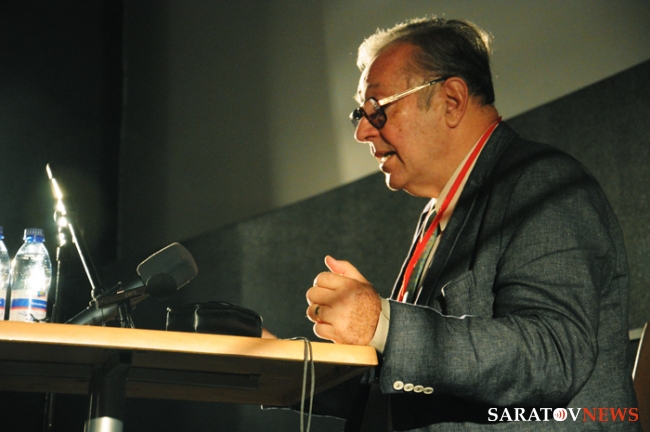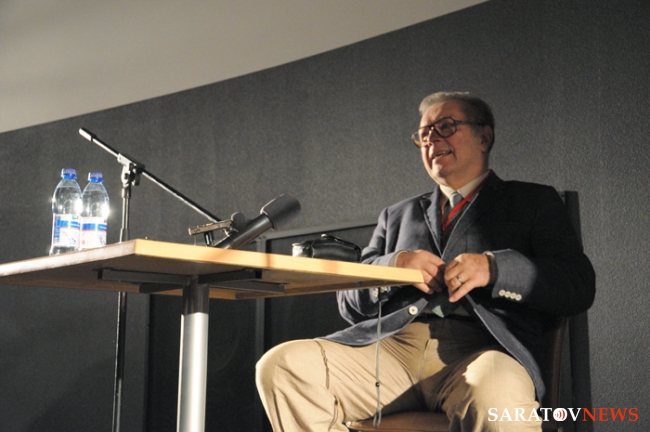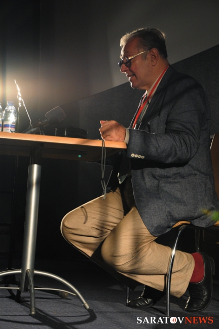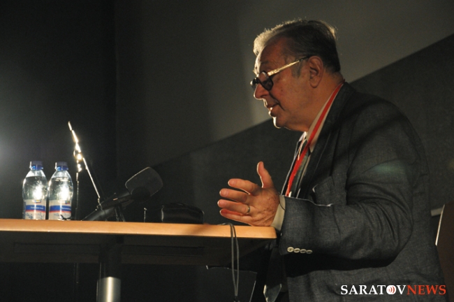 Своими детскими воспоминаниями режиссер открыл вечер общения с саратовцами. Он родился в год начала Второй мировой войны, и потому детства, как периода беззаботности и безответственности, у него не было: "Хоть мне было трудно это понять, но родители объясняли мне, что хороший мальчик иногда врет. Например, если в дверь стучится немецкий солдат, нужно говорить, что родителей нет дома, а ты не имеешь ключа - даже если на самом деле родители стоят у тебя за спиной. Позже, когда я пошел в школу, родители мне объясняли: когда идешь на урок математики, физики - слушай, там тебе говорят правду. А если это история, география - перескажи дома, что тебе говорили, и тебе расскажут правду, но в школе эту правду не повторяй".