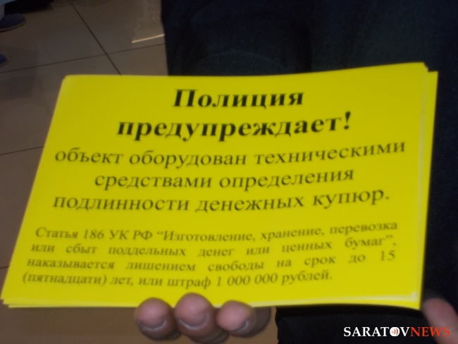 О необходимости таких мероприятий на сегодняшнем брифинге заявил заместитель начальника УВД по Саратову-начальник полиции полковник полиции Андрей Чепурной. Он отметил, что чаще всего злоумышленники стремятся сбыть купюры в темное время суток у частных извозчиков и индивидуальных предпринимателей. Они не всегда имеют возможность, в том числе техническую, выявить подделку.