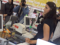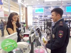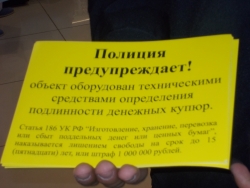 Правоохранители разъяснили работникам торговли как вести себя в случае выявления подозрительной денежки и раздали наклейки, предупреждающие об ответственности за сбыт фальшивок и об оборудованности точек специальной аппаратурой для выявления подлинности купюр, там где она есть.