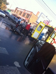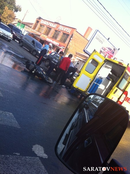 Около часа назад в центре Саратова легковушка сбила скутериста. По словам очевидцев, авария произошла на перекрестке улиц Чапаева и Большая горная. В дежурной службе городского ГИБДД Saratovnews рассказали, что вторым участников ДТП стала "Волга". После столкновения водитель двухколесного транспорта получил различные травмы и был госпитализирован.