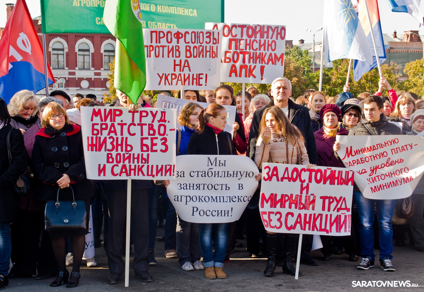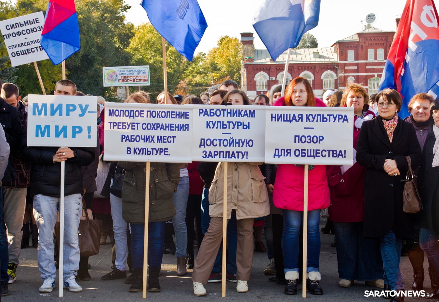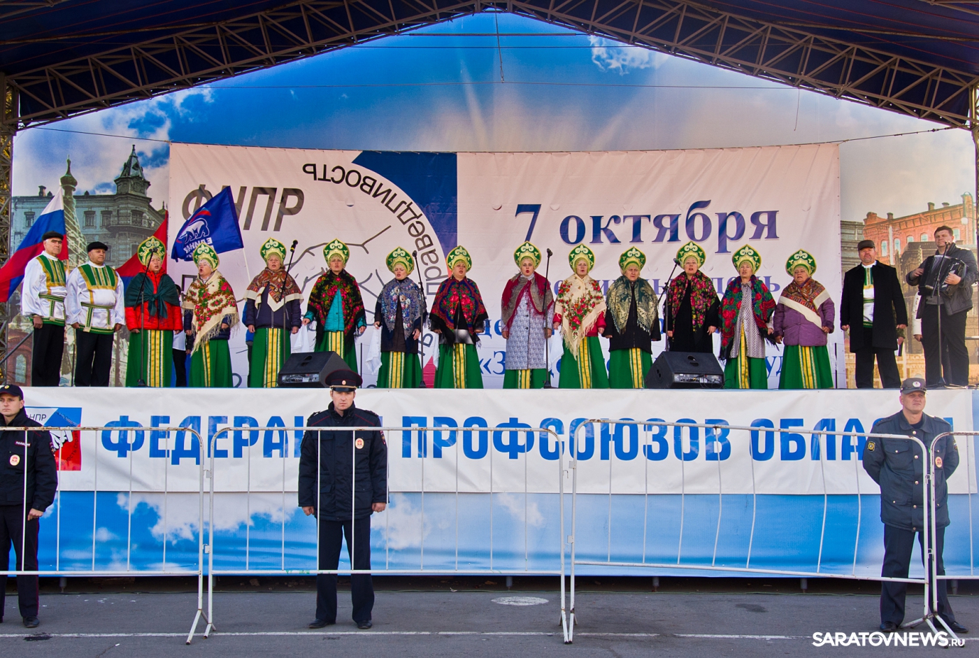 Сегодня, 7 октября, в 15.00 на Театральной площади Саратова прошел митинг-концерт под лозунгом "За достойный труд в мире без войн и санкций!". Всемирный день действий профсоюзов "За достойный труд!" проходит уже в седьмой раз. 7 октября в 130 странах мира поднимают проблемы соблюдения трудового кодекса, эффективной политики труда и занятости, достойной зарплаты, безопасного труда, справедливого пенсионного обеспечения.