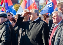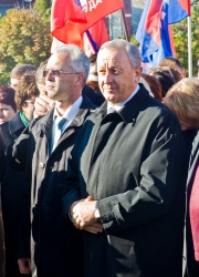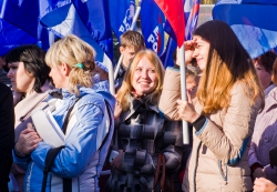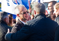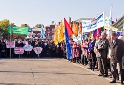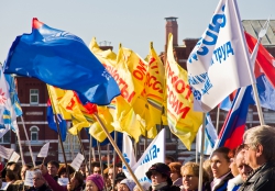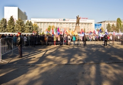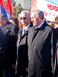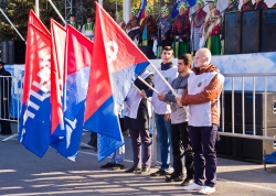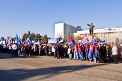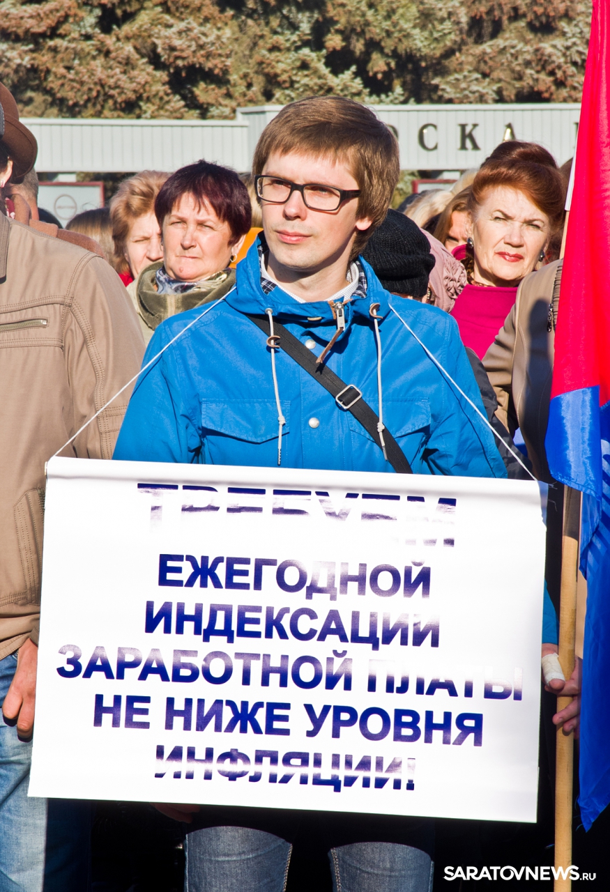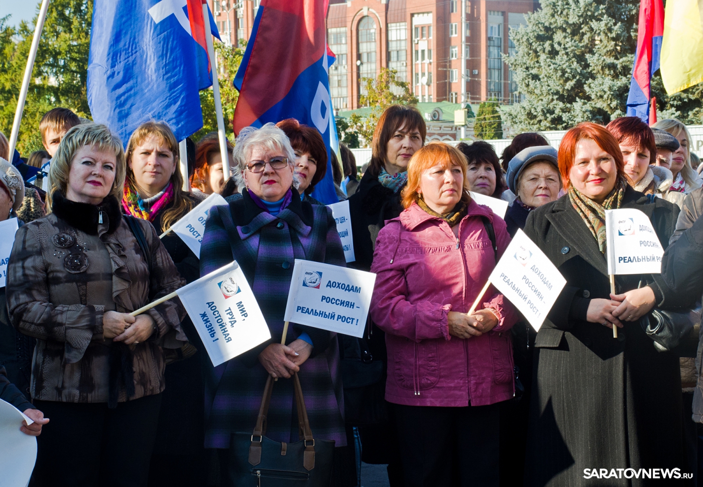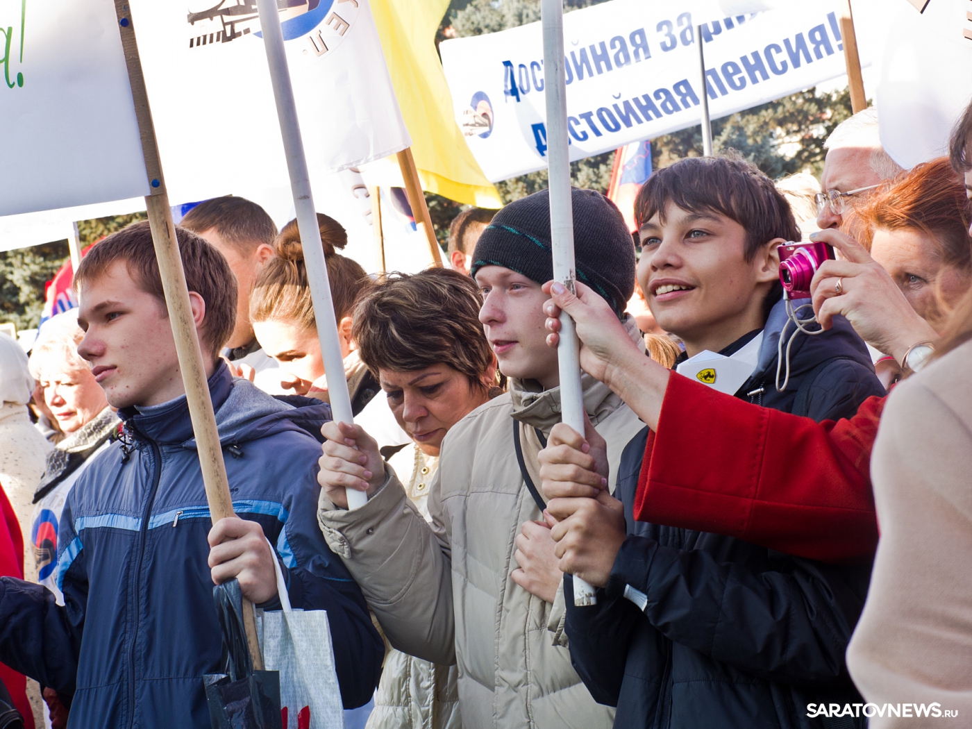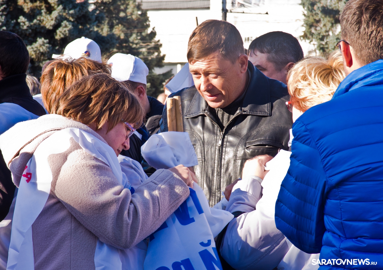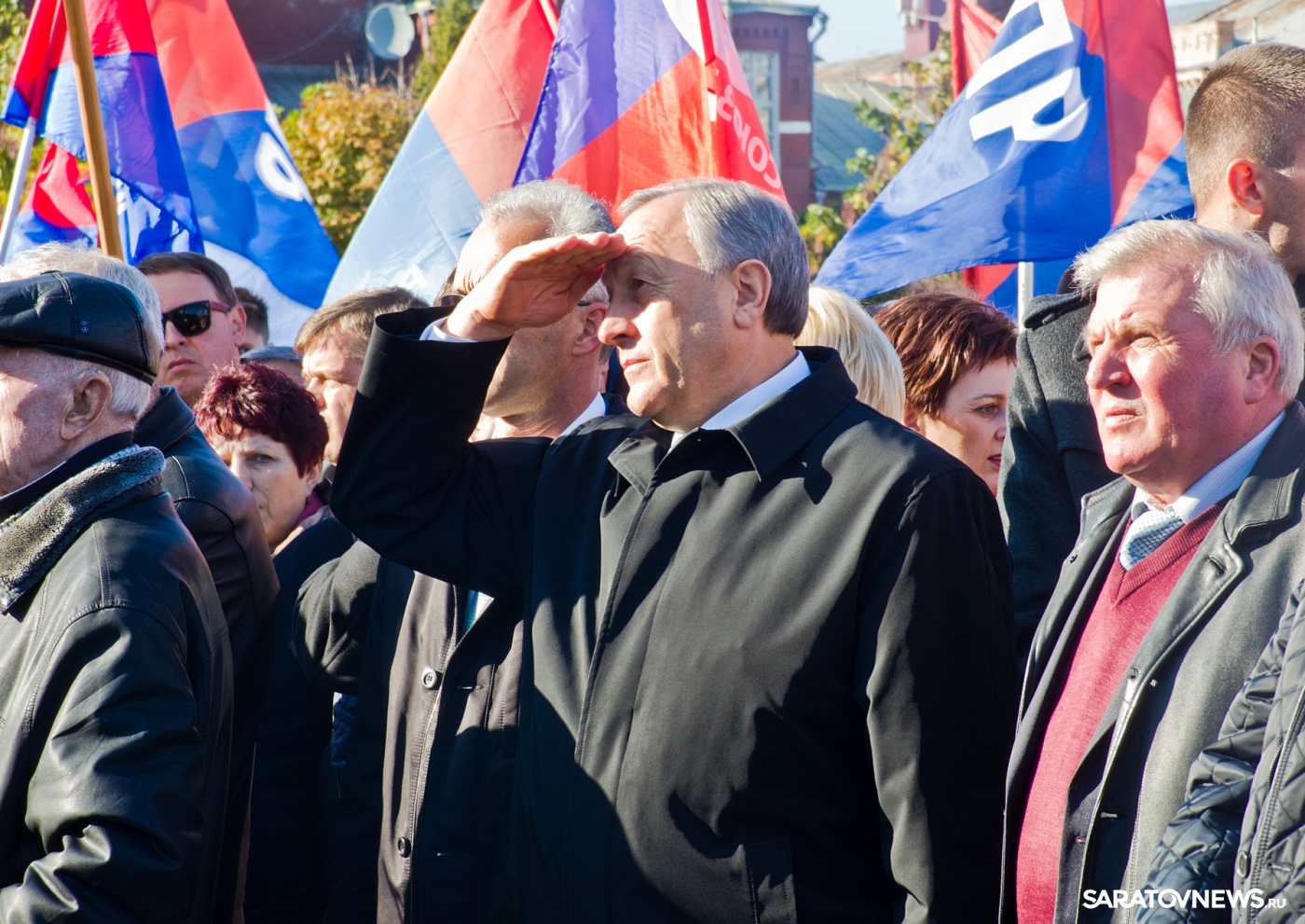 "Мы работаем на рост экономики, модернизацию промышленности, создание современных рабочих мест, повышение качества жизни. И равняемся - на человека труда, которого Президент назвал гордостью и опорой страны, кормильцем России!", - отметил Валерий Радаев в своем приветственном слове к участникам митинга. Далее он напомнил, что благодаря социальному партнерству в регионе снижается уровень безработицы - только с начала года создано около 11 000 рабочих мест; растет зарплата бюджетников, уровень которой приближен к средней по экономике. В Саратовской области права работников защищают 6 000 коллективных договоров и свыше 200 трудовых соглашений. Двенадцать лет подряд заключается трехстороннее соглашение между правительством, профсоюзами и предприятиями. По словам Радаева, современные внешнеполитические условия требуют от ее населения "координации действий, поиска новых решений, пересмотра экономических планов".