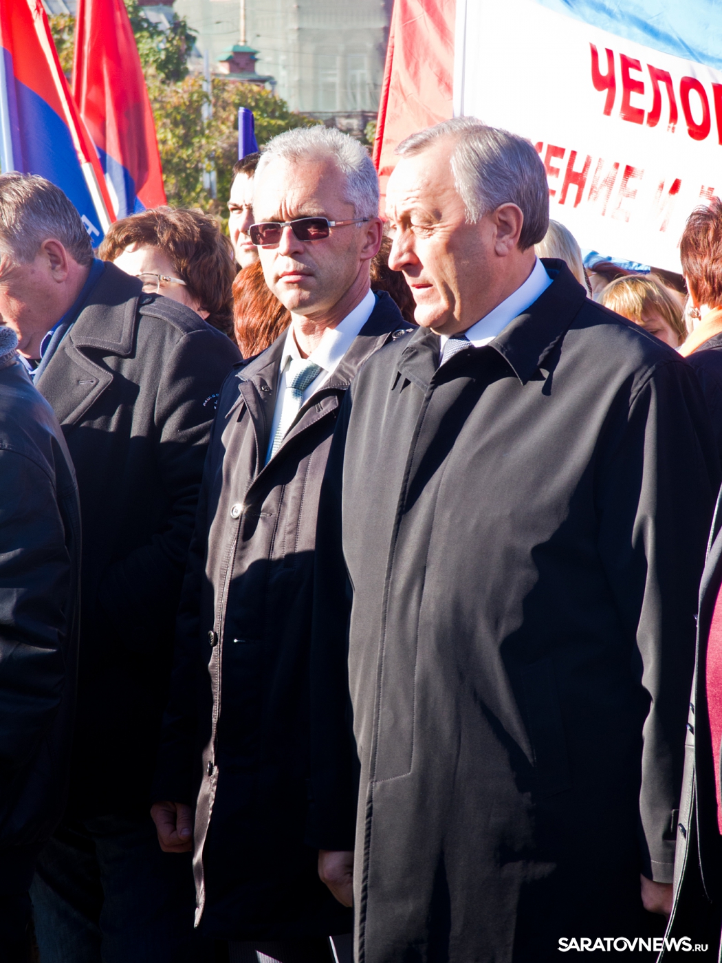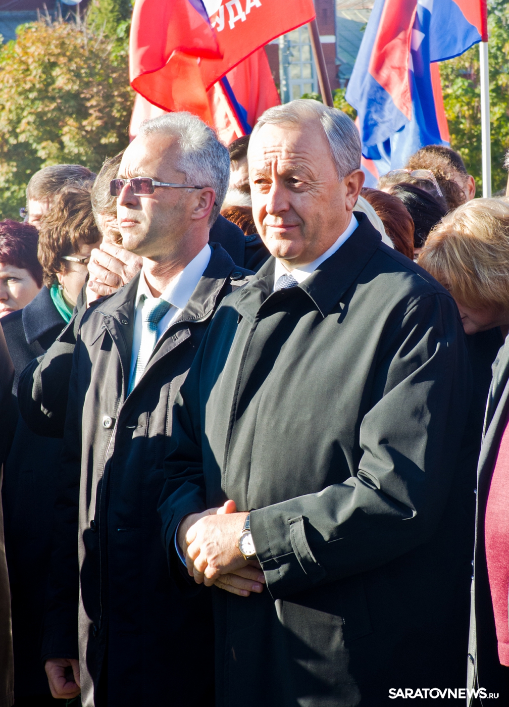 На площади в эти часы были замечены губернатор Саратовской области Валерий Радаев, вице-губернатор Денис Фадеев, глава областного комитета общественных связей Борис Шинчук, спикер областной думы Владимир Капкаев, главный федеральный инспектор Марина Алешина, председатель Федерации профсоюзов области Михаил Ткаченко.
