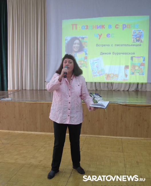 Школьники Саратова встретились и пообщались с детской писательницей из Москвы Диной Бурачевской. Мероприятие прошло в актовом зале администрации Фрунзенского района города, сообщает пресс-служба органа власти.