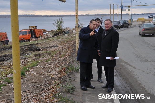 В ходе очередной рабочей поездки глава Саратова Олег Грищенко проверил, как идут работы по благоустройству участка прибрежной зоны в пос. Затон - недавно апелляционная инстанция арбитража подтвердила, что он был занят самовольными постройками, и сейчас их сносят, чтобы освободить берег.