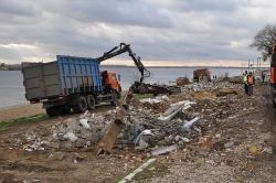 Глава Волжской администрации Сергей Бровкин подтвердил, что снос самовольных построек практически завершен, сегодня с помощью специализированной техники производится вывоз строительного мусора, демонтаж фундаментов строений, очистка территории.
