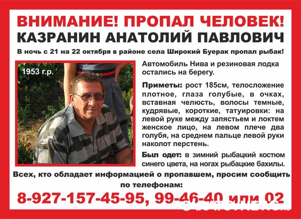 В селе Широкий Буерак Саратовского района Саратовской области ведется розыск 61-летнего рыбака Анатолия Казранина, информация об этом распространена в социальных сетях.