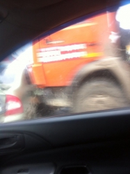 Здесь в 12.15 не поделили дорогу "Мазда", грузовик "Хундай" и большегруз "МАН". На ликвидацию ЧП потребовалось около 40 минут. Все это время общественный транспорт не двигался с места.