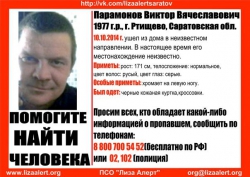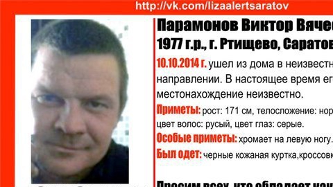 На странице ВКонтакте саратовского отделения волонтерской группы "Лиза Алерт" появилась информация о пропавшем без вести Викторе Парамонове, которого в последний раз видели в Ртищеве.