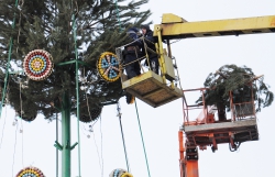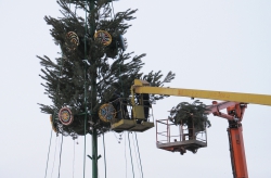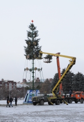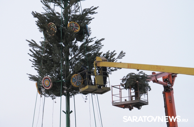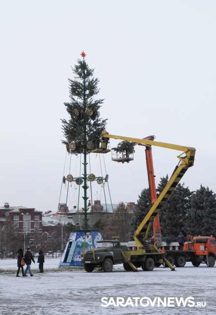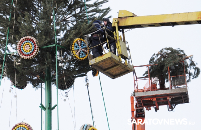 Сегодня на Театральной площади Саратова начали собирать новогоднюю елку. Рабочие в беседе с корреспондентом признались, что одного "КамАЗа" с хвойными деревьями не хватило, поэтому работы пришлось временно приостановить,