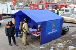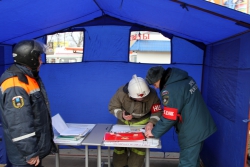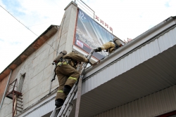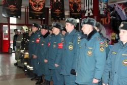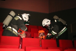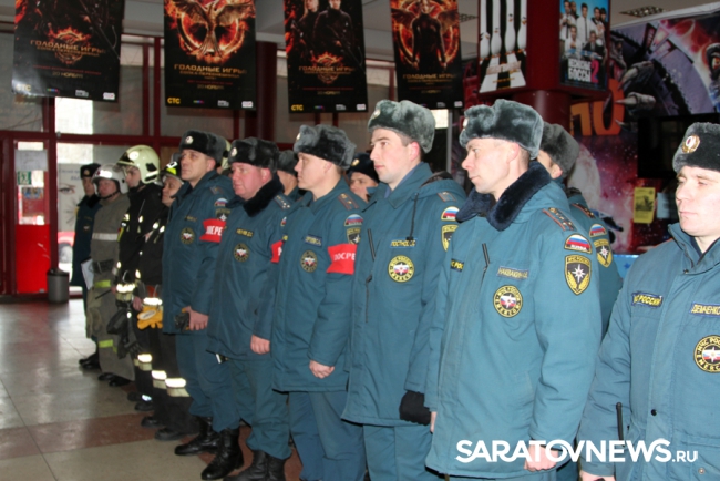 На место прибыли 12 единиц пожарной техники (восемь автоцисцерн и четыре единицы спецтехники) а также 50 человек огнеборцев. Они спасали и эвакуировали "зрителей", развернули пожарную лестницу. Движению по проспекту Строителей учения не мешали: вся спецтехника разместилась на площади перед кинотеатром.