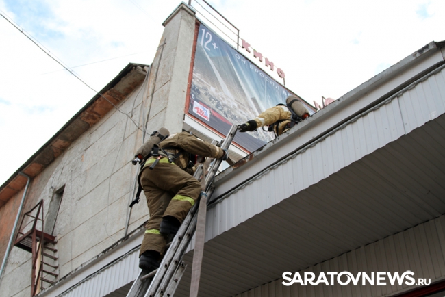 Опубликован фоторепортаж об учениях регионального ГУ МЧС России в здании кинотеатра "Саратов". Согласно легенде, в результате неосторожного обращения с огнем произошло возгорание в зрительном зале, соседние помещения наполнились дымом. На время прибытия первого пожарного расчета площадь горения составила 77 кв.м.