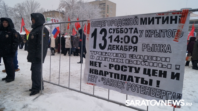 Сегодня, 13 декабря, в 14.00 на площади перед саратовским цирком собрался объединенный митинг оппозиции области, собравший представители политических движений "Яблоко", "Левый фронт" и прочих. Самой многочисленной делегацией на мероприятии стали сторонники КПРФ.