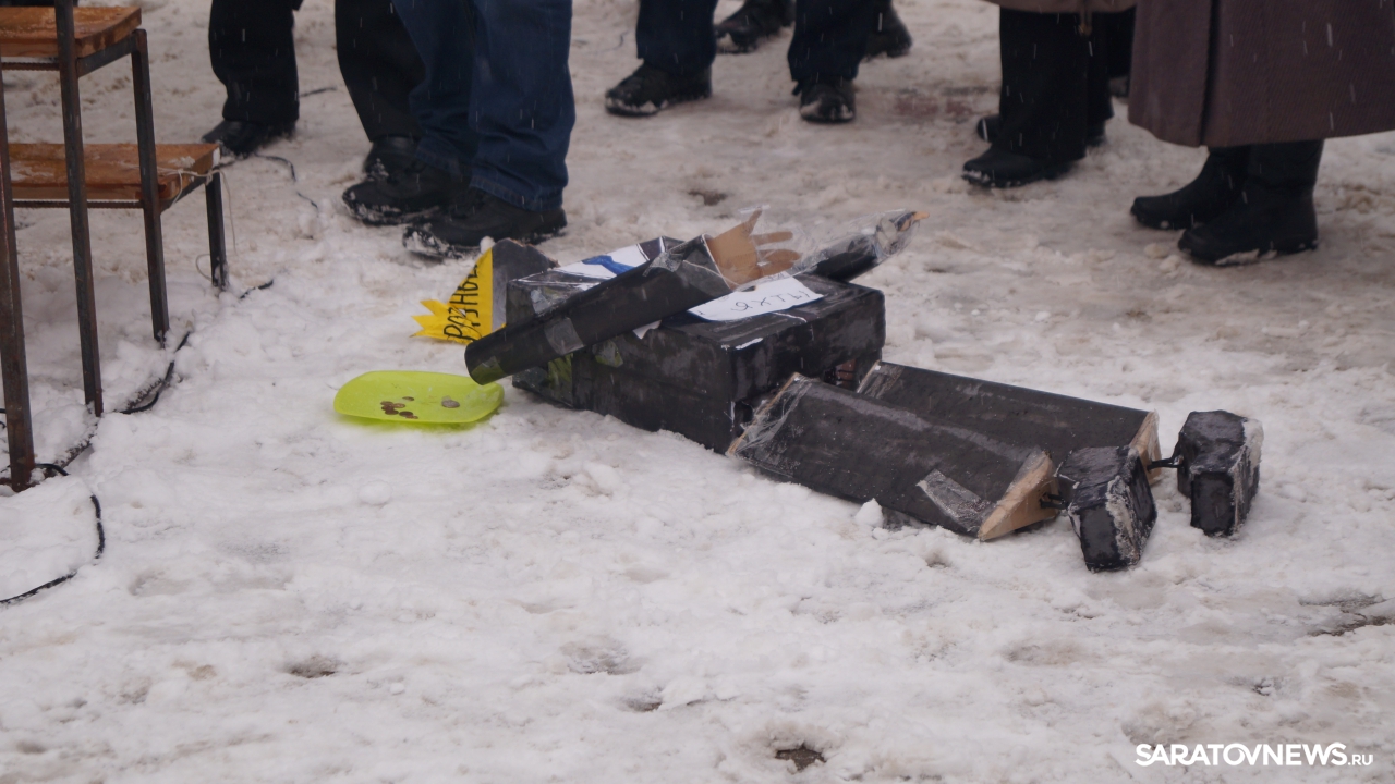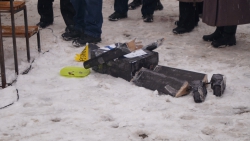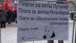 Выступавший вместе фигурой Аркадия Роттенберга молодой коммунист Николай Бондаренко так яростно потрясал в ходе своей речи наспех собранным "оппонентом", что к концу выступления у бумажного человечка отвалилась голова. Обезглавленное "тело" было сброшено в снег под ноги участников митинга.