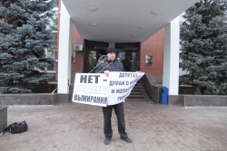 Полиция, которая охраняет здание думы, не обращала на коммуниста внимания. "Альтернативных" пикетов в радиусе 50 метров от Анидалова по состоянию на 9.20 замечено не было.