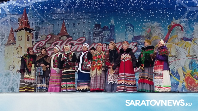 На Театральной площади Саратова прошел концерт "Русская зима" с участием ансамблей Театра драмы, музыки и поэзии "Балаганчикъ", ДК Химиков, Городского ДК "Звезда", Городского клуба детского творчества "Романтик", Клубов "Солнечный" и "Заводской".