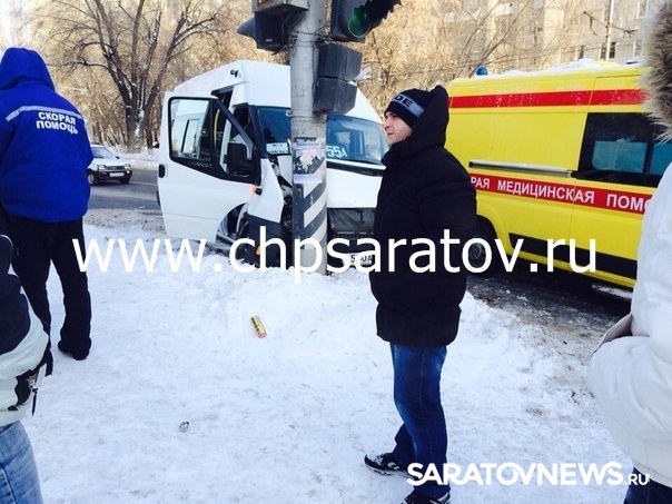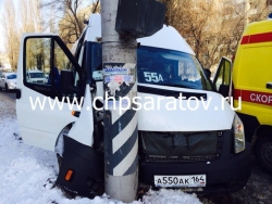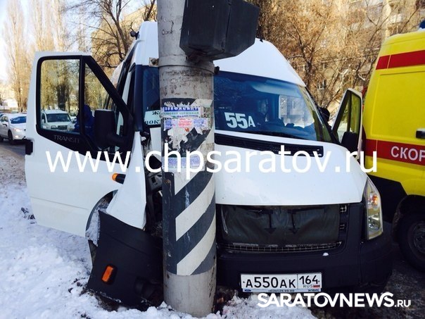 Сегодня, 29 декабря, около 12.20 в Саратове на улице Политехническая в ДТП попал микроавтобус маршрута №55а.