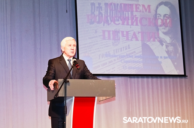 Поздравляя всех собравшихся с праздником, Валерий Радаев подчеркнул, что степень концентрации острых экономических и социально-политических процессов, произошедших за 2014 год в стране, потребовала от средств массовой информации большой собранности и напряжения сил, а консолидация и патриотический подъем, наблюдаемые среди россиян в течение года, стали результатом, в том числе, и профессионально честной работы журналистов. Глава региона отметил важность прессы, авторитет СМИ в глазах населения, значимость печатного слова как мощнейшего оружия, которое может привести к глобальным потрясениям, и, как следствие, высочайшую ответственность средств массовой информации. Кроме того, Валерий Радаев выступил с инициативой о проведении регионального конкурса журналистских работ, приуроченного к Году литературы в Саратовской области. Глава региона отметил, что в связи с этим конкурсом учреждает премию Губернатора в размере 50 000 тысяч рублей для победителей среди печатных СМИ, интернет-изданий и телеканалов.