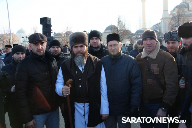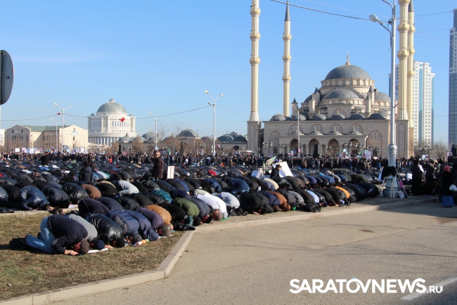 Вчера, 19 января, в столице Чечни Грозном у мечети "Сердце Чечни" прошла акция против карикатур в защиту ислама и пророка Мухаммада, в кторой наравне с миллионом сограждены участвовали 20 саратовских мусульман, сообщает пресс-служба регионаьного ДУМСО.