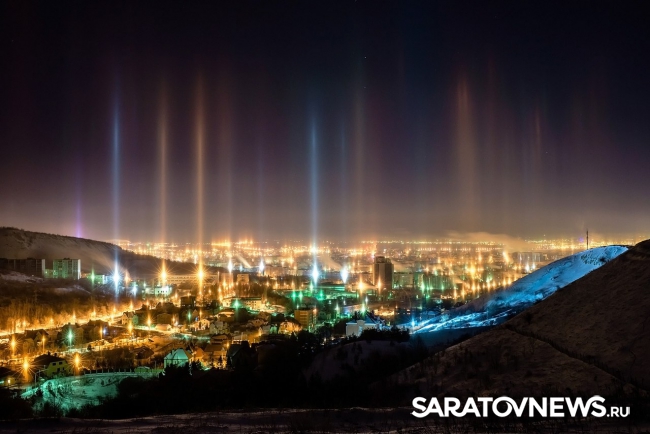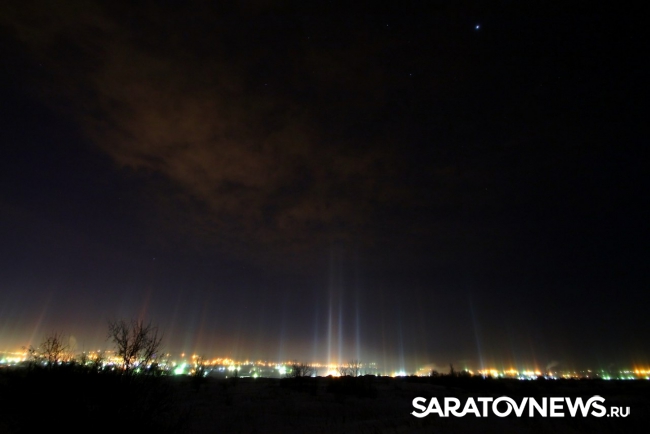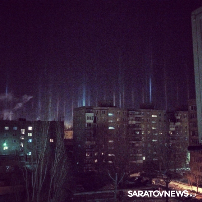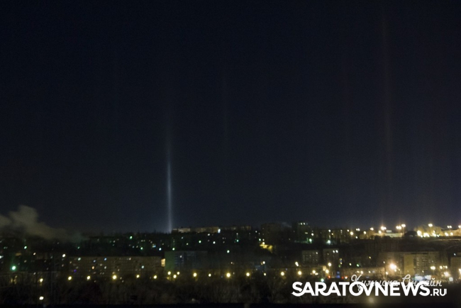 Жители Саратова этой ночью стали свидетелями уникального природного явления под названием "световые столбы", сообщается в паблике "Типичный Саратов". Оптическая иллюзия стала видна горожанам после часа ночи.