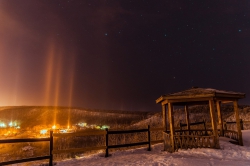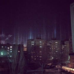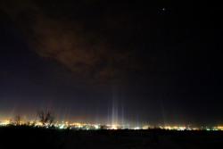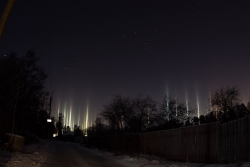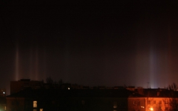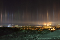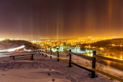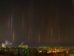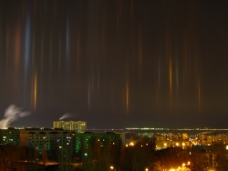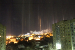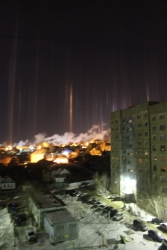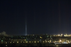 Световой столб - это один из видов гало, оптический эффект преломления света в кристалликах льда, взвешенных в воздухе, который внешне выглядит как светящийся столб от источника света.