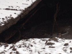 На дне провала грязная жижа, также под уцелевшим пластом асфальта видно трубы. Яма занимает весь тротуар, пешеходам приходится обходить ее по проезжей части. Отметим, что вода в этом районе улицы Чернышевского скапливалась постоянно, на проезжей части в сырую погоду образовывались огромные лужи.