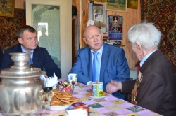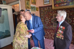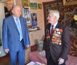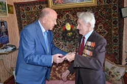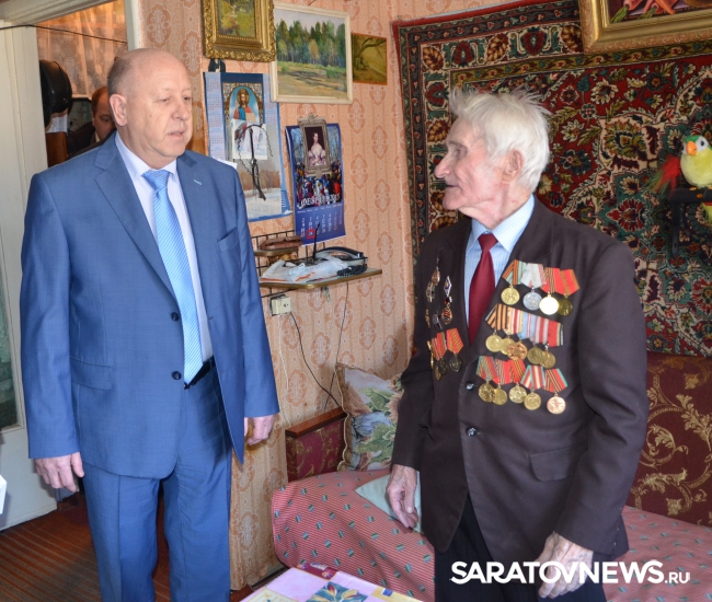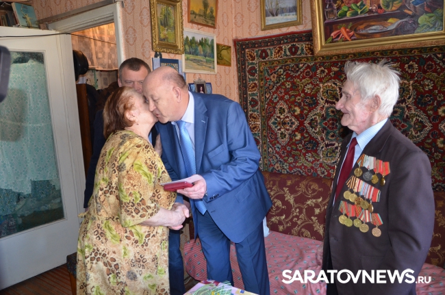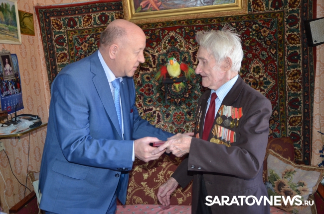 Глава администрации Саратова Александр Буренин вручил юбилейную медаль "70 лет Победы в Великой Отечественной войне" ветерану Великой Отечественной войны Илье Корогодину и труженице тыла Марине Леоновой.