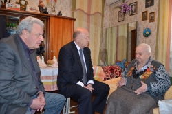 Глава администрации Саратова Александр Буренин пришел в гости к двоим ветеранам Великой Отечественной войны, чтобы поздравить их с наступающим праздником - 70-летием Победы в Великой Отечественной войне, вручить медали и памятные подарки. Вместе с чиновником в гости к ветеранам отправились депутат Саратовской областной думы Леонид Писной и глава администрации Волжского района Сергей Бровкин.