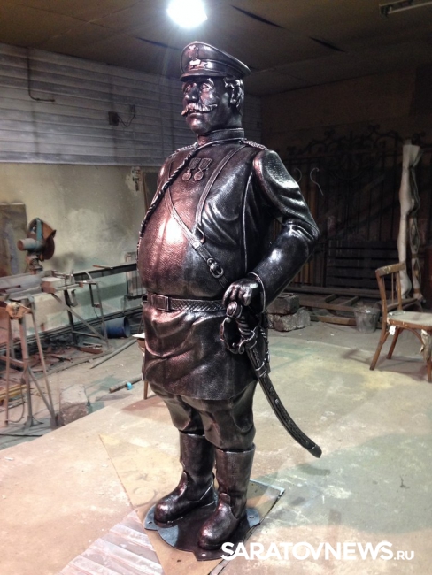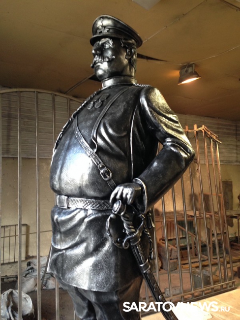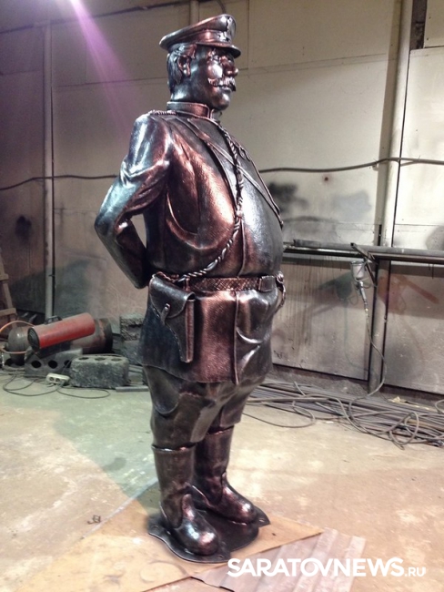Опубликованы фотографии памятника городовому, который может занять место на одной из центральных улиц Саратова. Материалы разместил у себя в ЖЖ блогер Денис Жабкин. По информации Дениса, работы над скульптурой велись в Волгограде.