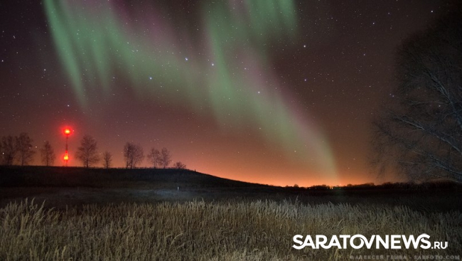 "Северное сияние породила сильная геомагнитная буря, которая совсем не в шутку разыгралась. Не обошло стороной это замечательное природное явление и Саратовскую область, где были видны вот такие световые столбы", - отметила в своем сообщении фотограф Анна Королева. Она добавила, что засняла сияние в 40 километрах от Саратова.