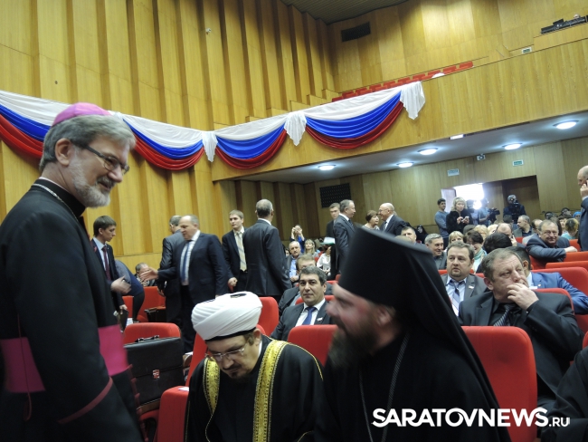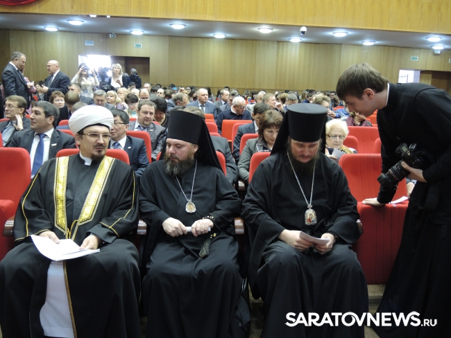 По его мнению, прерывание религиозных традиций стало большой проблемой для страны, открыв дорогу разнообразным сектам и тренингам, имеющим признаки "неорелигии". Вместе с тем, именно Россия, по мнению Шинчука, после "оскорбления, брошенного мусульманам со страниц журнала Шарли Эбдо, станет оплотом европейской духовности и европейскости". Он объявил, что после советского времени, когда только в Саратовской области было репрессировано более 800 православных священнослужителей, происходит "возвращение к животворным истокам в религиозных традициях". Выступление министра затянулось дольше выделенного ему времени, и участник заседания, председатель комитета Госдумы по делам национальностей Гаджимет Сафаралиев, начал проявлять нетерпение: стучал по микрофону, кашлял, и даже сделал жест, будто что-то бросает в докладчика. После окончания выступления губернатор Валерий Радаев попросил других докладчиков не выходить из регламента, чтобы не лишать возможности выступить тех, кто хотел бы взять слово следом.