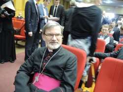 После Шинчука на кафедру вышел епископ Покровский и Николаевский Пахомий. Если Шинчук говорил о недостаточности знаний о религии в современном обществе, Пахомий сделал упор на чрезмерно низкий, по его мнению, уровень общей культуры жителей страны. "Так, люди совсем разучились петь. Песню, которую 40-50 лет назад мог исполнить любой на семейном застолье, теперь мы можем услышать только в исполнении профессионала", - с грустью сообщил епископ.