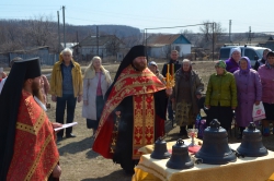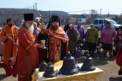В своем поздравлении, отец Никон отметил - у храма теперь есть свой голос, который будет созывать народ на службу Божию. Он выразил надежду, что общими молитвами и трудами восстановление этого старинного храма будет активно продолжаться. После освящения колокола были установлены на звонницу, и раздался пасхальный звон.