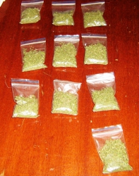 В ходе обыска дома 32-летнего участника группы на чердаке обнаружено около 2 кг марихуаны, находившиеся в стеклянной банке, коробке из-под чая и пакете. В комоде найдены спичечные коробки, приготовленные для фасовки наркотика. Сырье для изготовления марихуаны выращивалось на приусадебном участке - это наркополицейским стало понятно, после обнаружения куста конопли в заброшенной бане.
