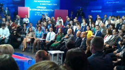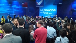 Взяв слово, сопредседатель ОНФ Станислав Говорухин напомнил, что для участников встречи ей предшествовали три дня работы второго Медиафорума ОНФ: "Собрались представители независимой прессы со всей России, включая Крым, Севастополь, сотрудники федеральных СМИ, иностранные журналисты - всего около 350 человек, - и напряженно работали все это время, обмениваясь опытом по решению профессиональных проблем".
