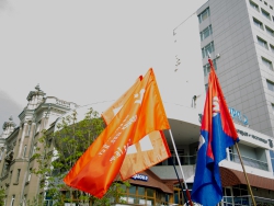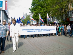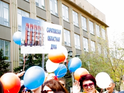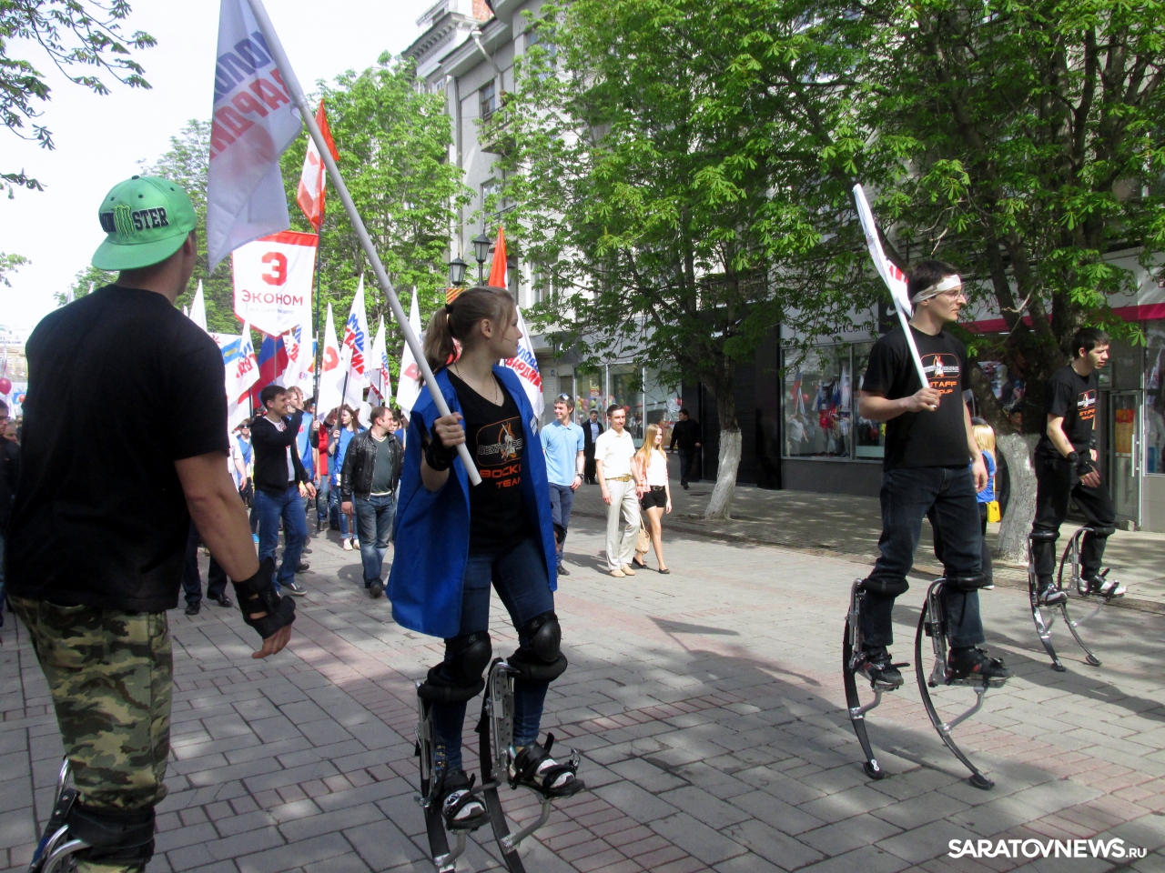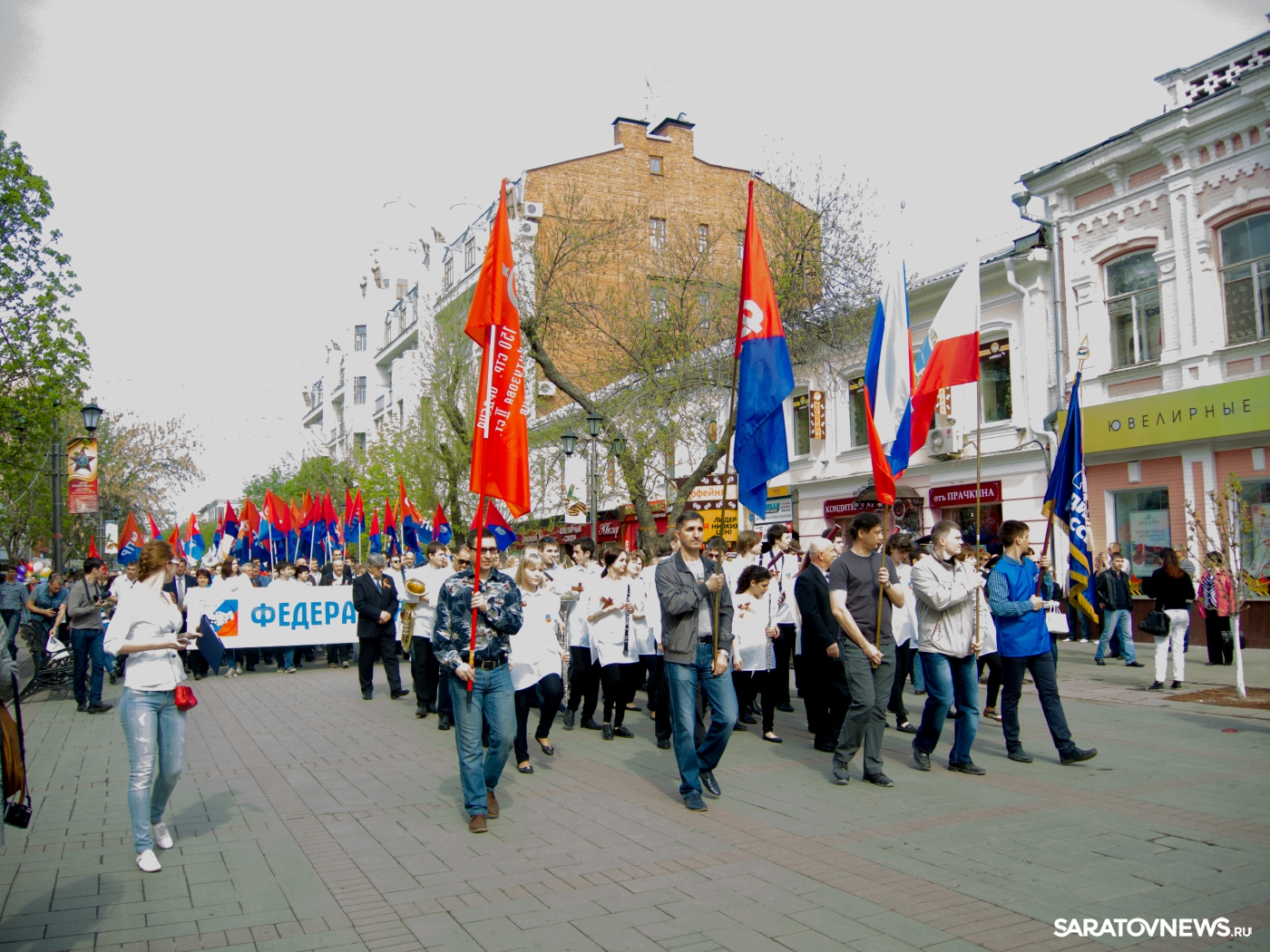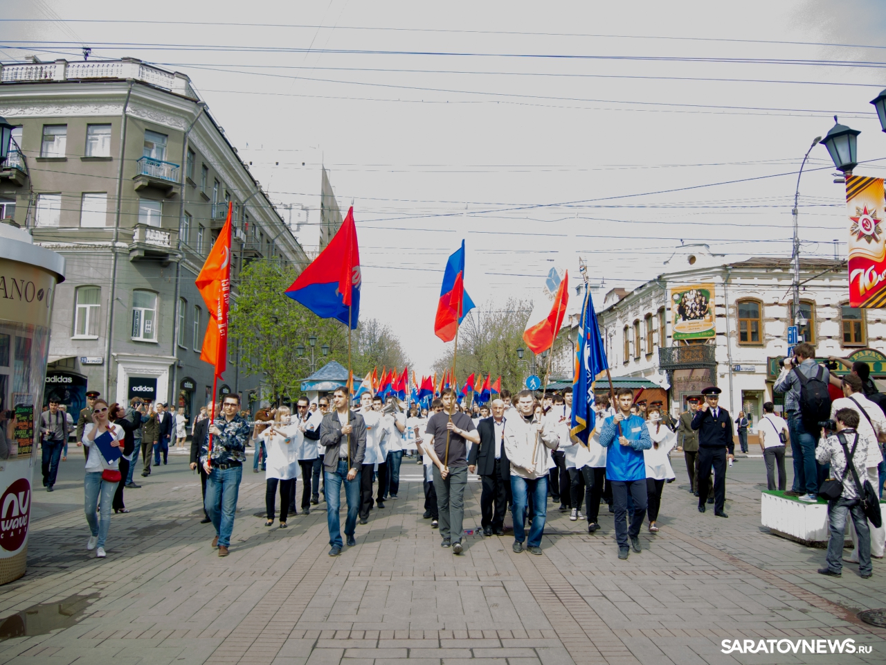 Маршрут пестрой колонны с транспарантами, воздушными шариками и флагами пролегал от площади Кирова перед цирком, до площади перед Консерваторией. Именно там была установлена сцена для саратовских политиков, с которой они приветствовали проходящих мимо студентов, работников медицины, образования, культуры, промышленного комплекса региона, участников политических движений, а также представителей районов области.