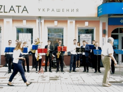 Одной из популярных композиций митинга стала песня военных лет "Катюша" - ее для шествующих играл оркестр на проспекте Кирова, ее же для губернатора исполнил музыкальный народный коллектив из Саратовского района Саратовской области.
