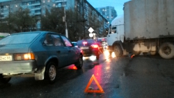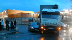 По словам очевидцев, "КАМАЗ" не поделил выезд с парковки "Оранжевого" с отечественной легковушкой - автомобили притерлись боками, и грузовик частично подмял капот "ВАЗа" под себя. Обошлось без пострадавших, однако участники дорожной аварии перегородили одну из полос движения (в сторону проспекта Энтузиастов) по Пензенской. Автомобилям приходится объезжать место происшествия, на котором уже работают сотрудники ГИБДД, по встречной.