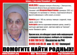 В настоящее время находится в больнице, куда ее поместила подмосковная полиция. Информацию о гражданке можно сообщить по бесплатному всероссийскому номеру 8-800-700-54-52; 8(495) 646-86-39 или 02 (102).