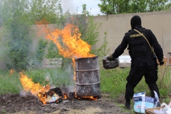 Сегодня, 14 мая, в Саратове предано огню 35 килограмм наркотиков, являвшихся доказательствами по различным завершенным уголовным делам, сообщает пресс-служба УФСКН по Саратовской области. По каждому было вынесено судебное решение, а межведомственная комиссия проследила за тем, как уничтожались героин, гашишное масло, марихуана, синтетические наркотики.