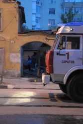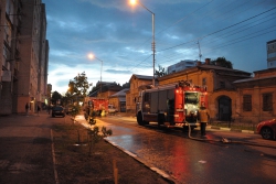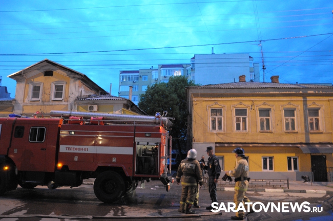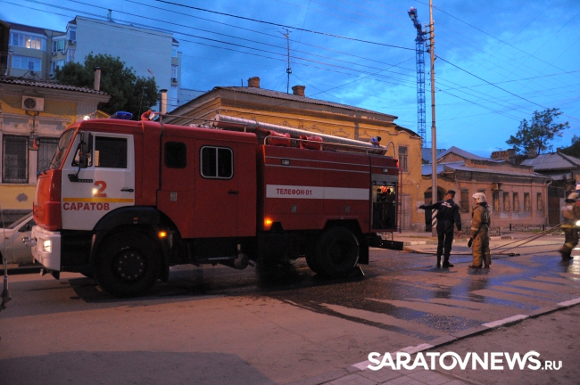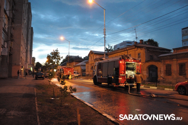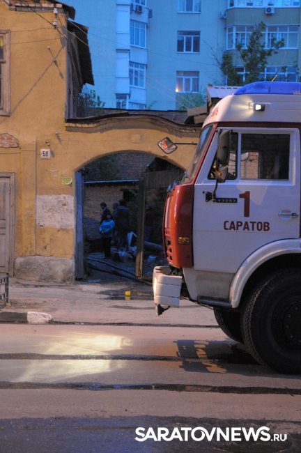 Сегодня около 20.00 в Саратове на улице Первомайская произошел пожар в одном из старинных домов, расположенных между Соборной и Некрасова. На тушение было вызвано не менее трех пожарных расчетов. Чтобы спецтехнике и огнеборцам не мешали работать, полицейские перекрыли улицу Первомайскую на указанном участке. Поскольку вечером выходного дня движение в центре не интенсивное, заторов это не вызвало.