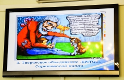 Переходя к номинации "Визитная карточка города", чиновники рекомендовали покрупнее подписать эскиз, изображающий изобретателя трактора Федора Блинова, под тем предлогом, что горожане будут путать его малоизвестную внешность то с Марксом, то с Энгельсом. С эскиза, посвященного личности скульптора Кибальникова, автора попросят убрать политически неблагонадежный памятник Богдану Хмельницкому и вместо него поставить на фон "что-нибудь саратовское, не обязательно консерваторию". А вот вариант с портретом Кутякова согласно отмели: фигура неоднозначная, ассоциации отрицательные, да и гражданская война явление исторически куда более противоречивое, чем Великая Отечественная. Кандидатуру рисованного Деникина обсуждать даже не стали - "по совокупности причин". Из работ на тему Великой Победы, к слову, отобрали лишь одну - изображающую Марину Раскову, так что, если этот эскиз будет воплощен в жизнь, на саратовской набережной Расковых будет уже две. А вот изображения Троице-Сергиевой лавры с Музейной площади не будет ни одного, потому что смысла рисовать действующий и к тому же находящийся в пешей доступности собор члены комиссии не нашли. Однако, автору предложат изобразить взамен Александрово-Невский храм, на месте которого ныне находится стадион "Динамо". Также на стене набережной может появиться фантазия на тему холодильника "Саратов" - глава комитета мэрии по культуре Алексей Комаров особо подчеркнул, что этот холодильник единственный чуть ли не в мире, имеющий ширину всего 48 см и потому идеальный для малогабаритных кухонь, а Федотов нашел в "Саратове" еще один плюс: "А сломается - можно использовать как шкаф!".