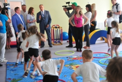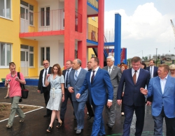В детском саду обеспечено 94 новых рабочих места, в том числе 35 - для педагогического состава. "Новый детский сад соответствует высокому уровню нового микрорайона, который появился здесь за последние несколько лет. Это большое, современное дошкольное учреждение, в котором есть всё необходимое для воспитания детей", - подчеркнул губернатор. Высокие гости вручили заведующей детского сада Марии Александровой подарки – сертификат на новое спортивное оборудование и интерактивный комплекс для музыкального зала.