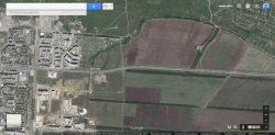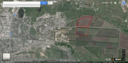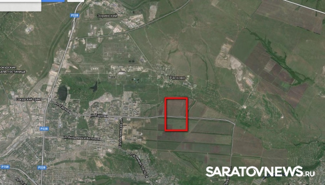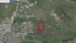 На плане выделены два участка площадью 42 и 35 гектаров по обе стороны дороги, являющейся продолжением улицы Тархова. Сейчас на этом месте пустырь и лесополосы.