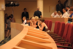 После Харченко на сцену зала заседаний думы вышел вице-губернатор области Денис Фадеев и зачитал поздравительный текст от Валерия Радаева. "Организованная в молодом российском государстве, новая структура приняла на себя полномочия по контролю над финансовыми потоками. Было сделано все, чтобы ее работа была прозрачной и надежной. Четко следуя букве закона, работники палаты отсекают коррупционную составляющую - это профессионализм, помноженный на верность делу", - говорится в поздравлении главы региона.