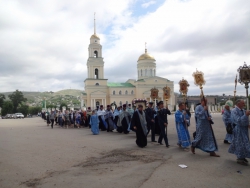 Вчера, 3 июня, в Вольске Саратовской области прошел крестный ход к возрождающейся обители — Владимирскому женскому монастырю, сообщает пресс-служба епархии Саратовской области. Перед этим в кафедральном соборе во имя Живоначальной Троицы было совершено праздничное богослужение в честь празднования Владимирской иконы Божией Матери.