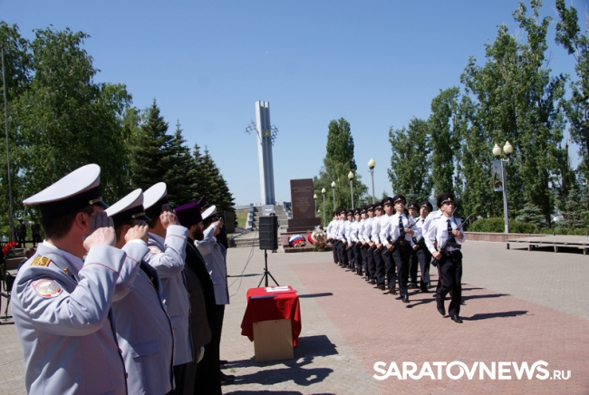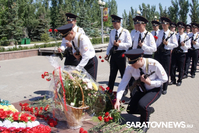 В завершении мероприятия сотрудники прошли торжественным маршем и возложили цветы к Вечному огню, сообщает пресс-служба ГУ МВД России по Саратовской области.