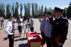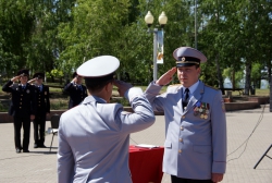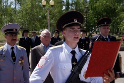 Председатель областного совета ветеранов ОВД Борис Хловпик также выступил с напутствием, подчеркнув, что молодое поколение стражей правопорядка может рассчитывать на помощь ветеранов.