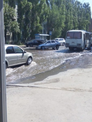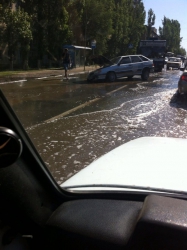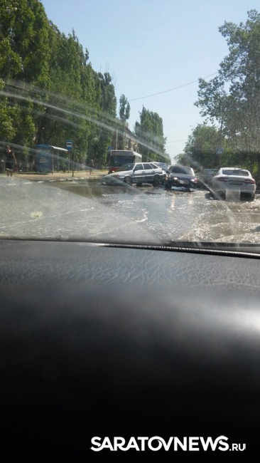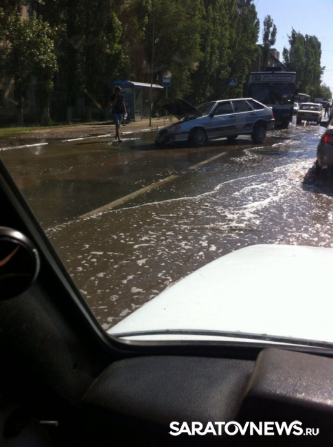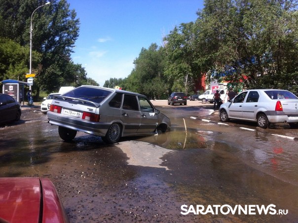 На снимках очевидцев в группе "Местоположение ДПС - Саратов и Энгельс" видно провалившийся передним колесом "ВАЗ-2114". Водитель угодил в провал, образовавшийся в результате коммунальной аварии - по проезжей части обильно течет вода. На месте происшествия - пробка.